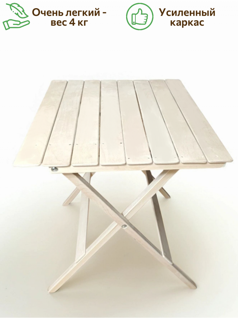 Раскладной деревянный стол отлично подойдет как для кухни, дома, балкона, так и для пикника и загородного отдыха.