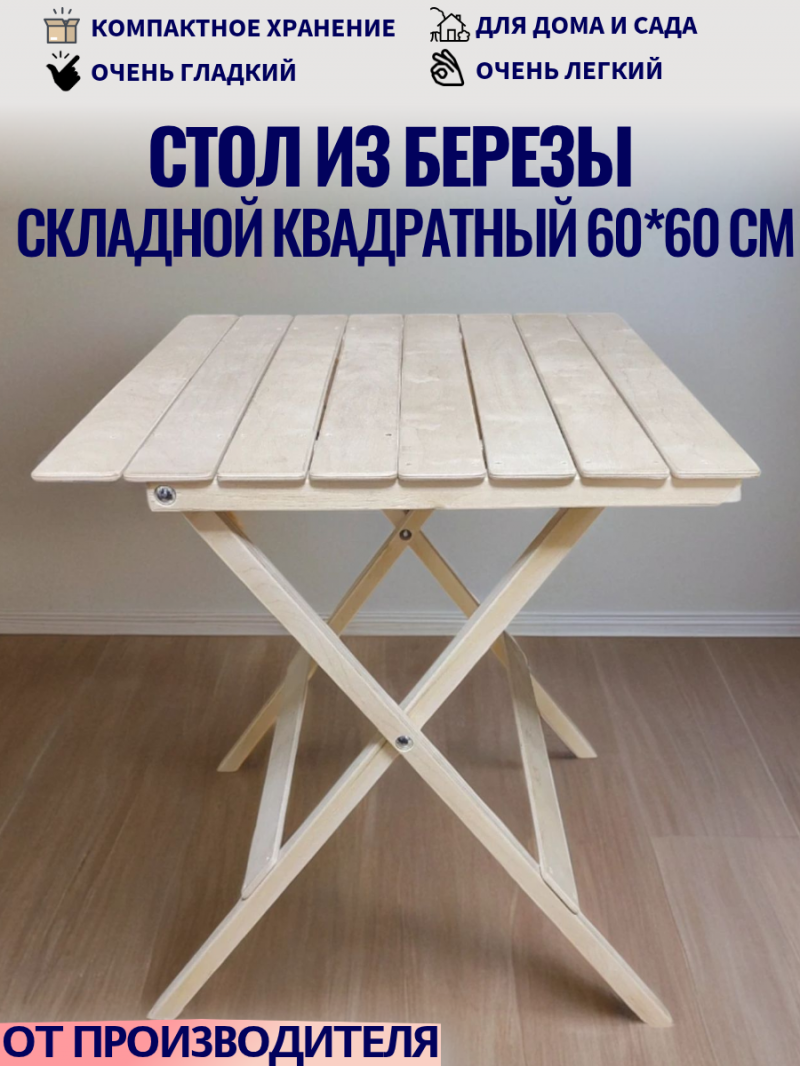 Стол раскладной деревянный квадратный всепогодный 100% из березы. Проверяем каждый стол и отдаем в собранном виде, что исключает возможность брака. Свое производство!