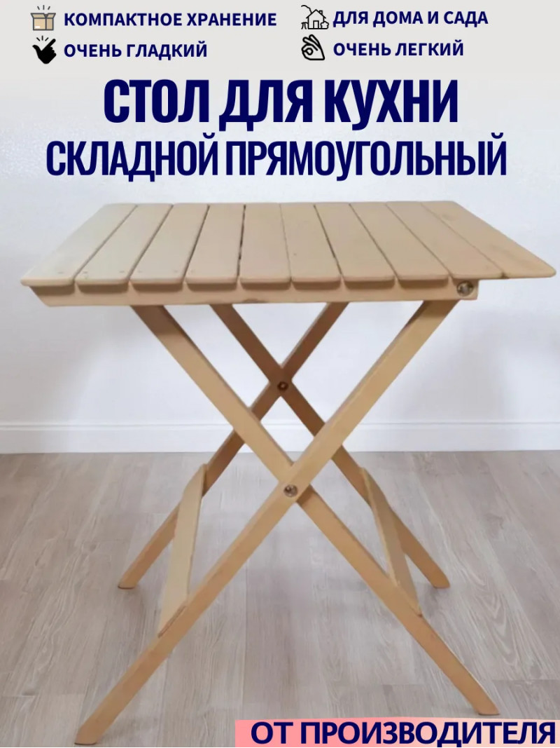 Раскладной деревянный стол отлично подойдет как для кухни, дома, балкона, так и для пикника и загородного отдыха.