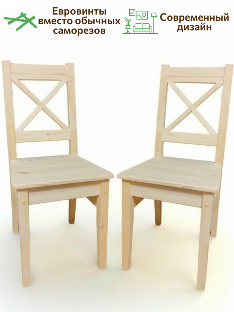 Сборка очень простая, без больших усилий, благодаря евровинтам, которые мы используем вместо обычных саморезов. Кроме того, наши стулья легко покрасить, они отшлифованы под покраску. Всего за 10 минут на сборку вы сразу же будете наслаждаться своими новыми стульями!