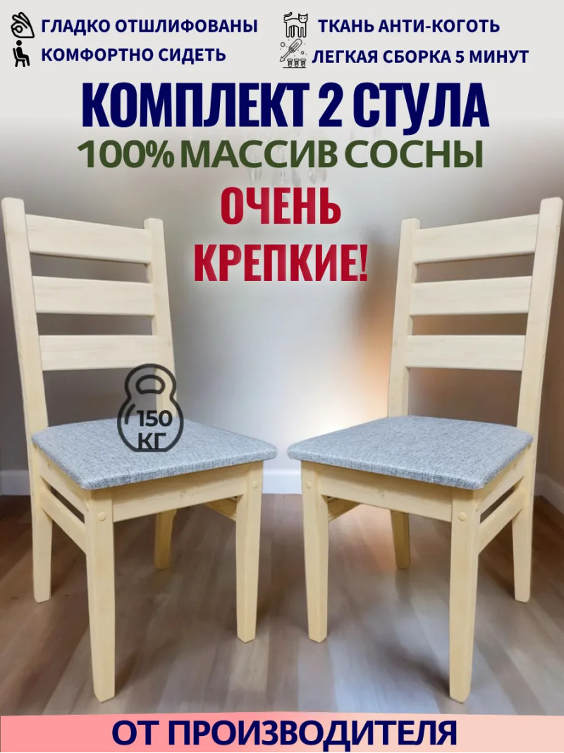 Наши деревянные стулья из натурального дерева с мягким сиденьем - лучший выбор в соотношении цена/качество! Стулья изготовлены из 100% массива сосны, очень прочные, выдерживают вес до 150кг.